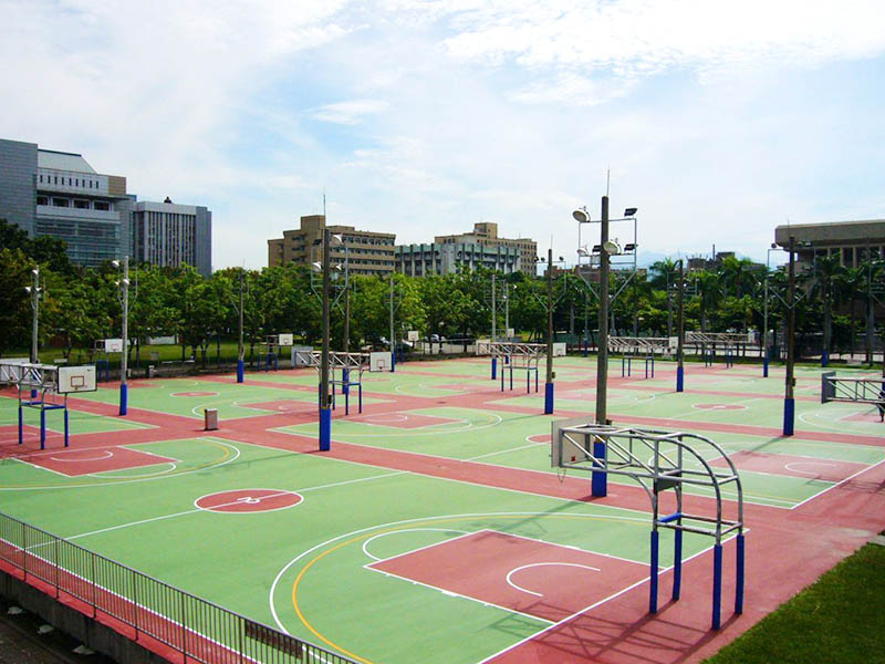 3、硅PU表層密實度,硬軟適合。不易開裂、脫皮、退色泛白,歷經簡易的清理就可以始終保持籃球場明亮如新口。